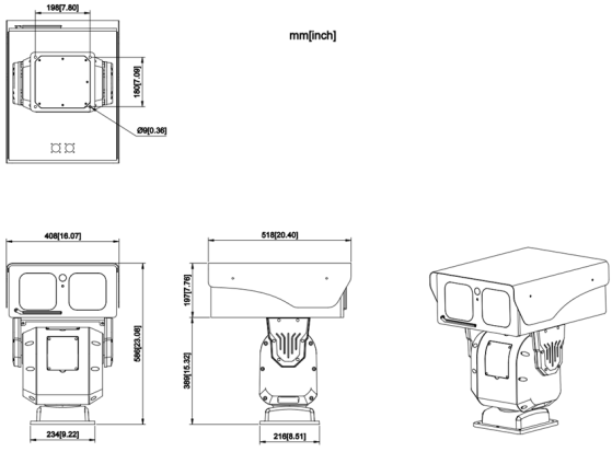 Pan: 360 ° rotate; Tilt: - 70 ° ~ + 20 ° |